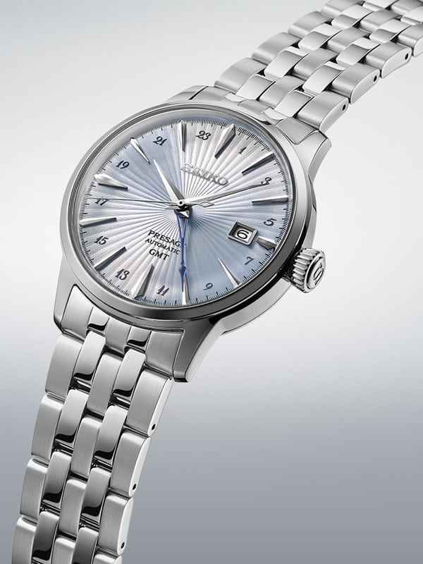 Αυτόματο Ανδρικό ρολόι του οίκου Seiko της σειράς Presage 'Skydiving' Cocktail Time με ένδειξη GMT. Με διάμετρο 40,50mm και στεγανό στα 50m / 50 bar. Συνοδεύεται από εγγύηση επίσημης αντιπροσωπείας. Official retailer του Brand Seiko για την Ελλάδα.