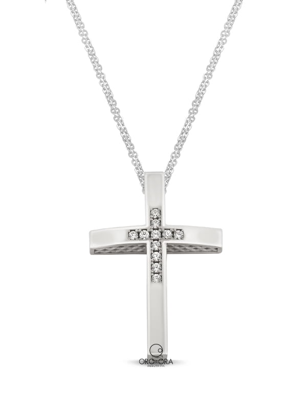 Σταυρός Λευκόχρυσος 14K με Ζιρκόν