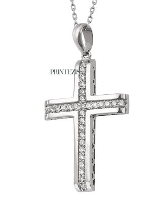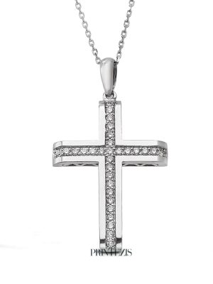 Σταυρός Λευκόχρυσος Κ18 με Διαμάντια
