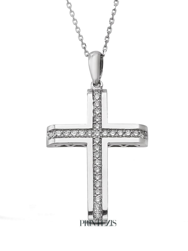 €122.5 x 12 άτοκες Σταυρός Λευκόχρυσος Κ18 με Διαμάντια. Αναβαθμίστε πολυτελώς τις επίσημες εμφανίσεις σας φορώντας τη λάμψη των πολύτιμων και ημιπολύτιμων λίθων.Διαλέξτε το κατάλληλο κόσμημα για εσάς ή για δώρο ανακαλύπτοντας τις ολοκληρωμένες συλλογές μας σε μοντέρνα και κλασικά σχέδια. Κάθε κόσμημα συνοδεύεται από πιστοποιητικό και εγγύηση ποιότητας PRINTEZIS.