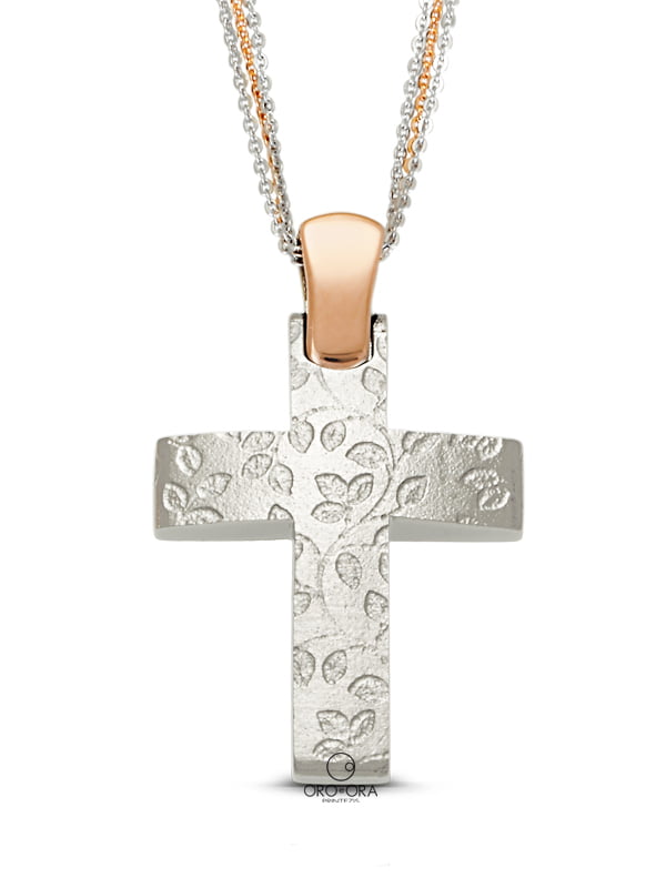 Σταυρός Λευκόχρυσος-Ροζ Χρυσός 14K με Αλυσίδα