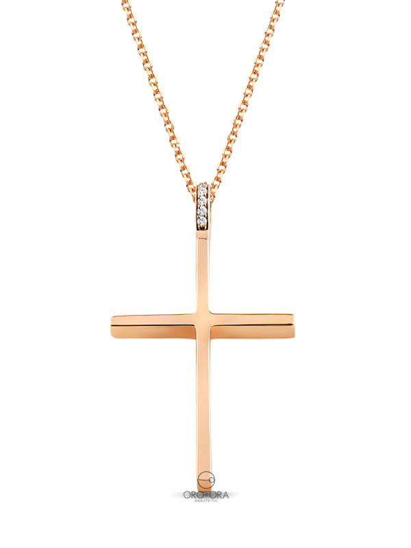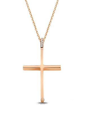 Σταυρός Ροζ Χρυσός 18K με Διαμάντια και Αλυσίδα