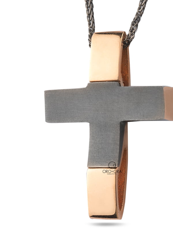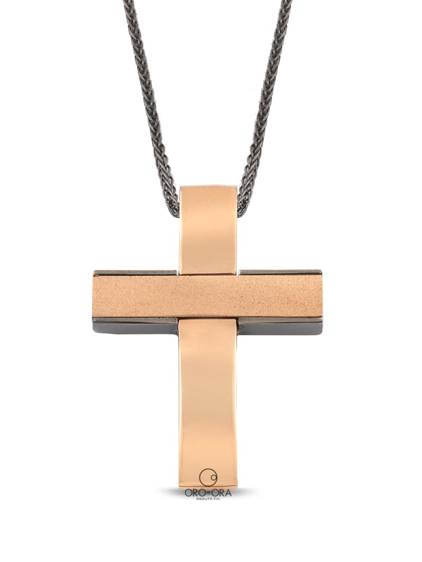 Σταυρός Ροζ Xρυσός 14K με Μαύρο Πλατίνωμα και Αλυσίδα