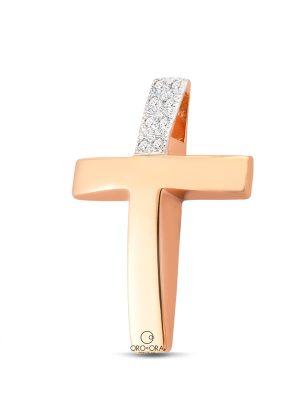 Σταυρός Ροζ Xρυσός 14K με Ζιρκόν