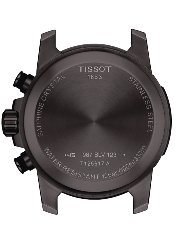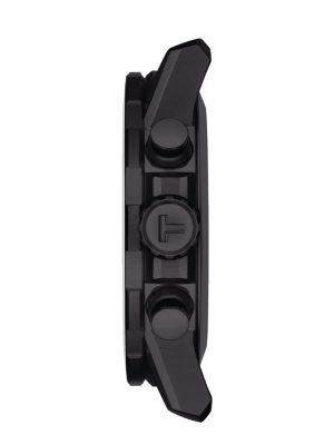 Ανδρικό αναλογικό ρολόι της εταιρίας Tissot, μεγάλου μεγέθους με μεταλλικό μπρασελέ σε μαύρο χρώμα.