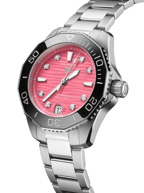 Αυτόματο Γυναικείο ρολόι του οίκου TAG Heuer της σειράς Aquaracer Professional 300 Lady με ροζ καντράν. Με διάμετρο 36,00mm και στεγανό στα 300m / 30 bar. Συνοδεύεται από εγγύηση επίσημης αντιπροσωπείας. Official retailer του Brand TAG Heuer για την Ελλάδα.