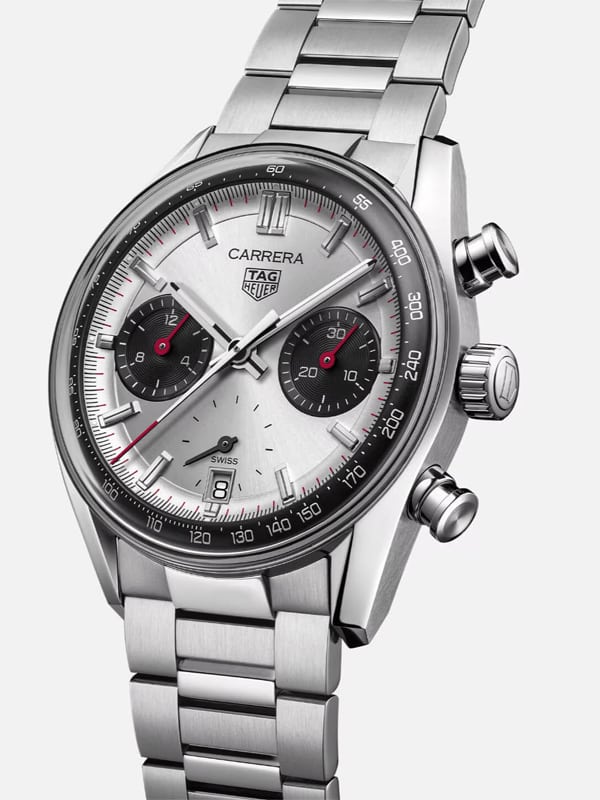 €308.33 x 24 άτοκες Tag Heuer Carrera Chronograph με ασημί καντράν, διάμετρο 39,00mm και στεγανό στα 100m / 10 bar. Συνοδεύεται από 2 έτη εγγύηση επίσημης αντιπροσωπείας. Ζήσε τον παλμό της ταχύτητας.