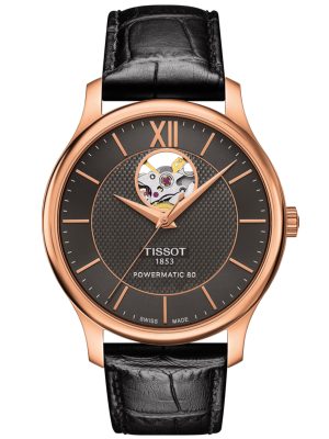 Αυτόματο Ανδρικό ρολόι του οίκου Tissot της σειράς Tradition Powermatic 80 Open Heart με Ανθρακί καντράν. Με διάμετρο 40,00mm και στεγανό στα 30m / 3 bar. Συνοδεύεται από εγγύηση επίσημης αντιπροσωπείας. Official retailer του Brand Tissot για την Ελλάδα.