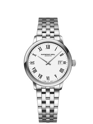 Γυναικείο ρολόι από την εταιρία Raymond Weil. Το στρογγυλό καντράν μικρού μεγέθους, με το μεταλλικό μπρασελέ σε ασημί χρώμα, κάνουν το ρολόι ιδανικό για καθημερινές άλλα και πιο επίσημες εμφανίσεις.